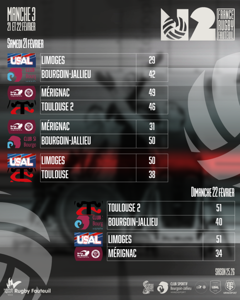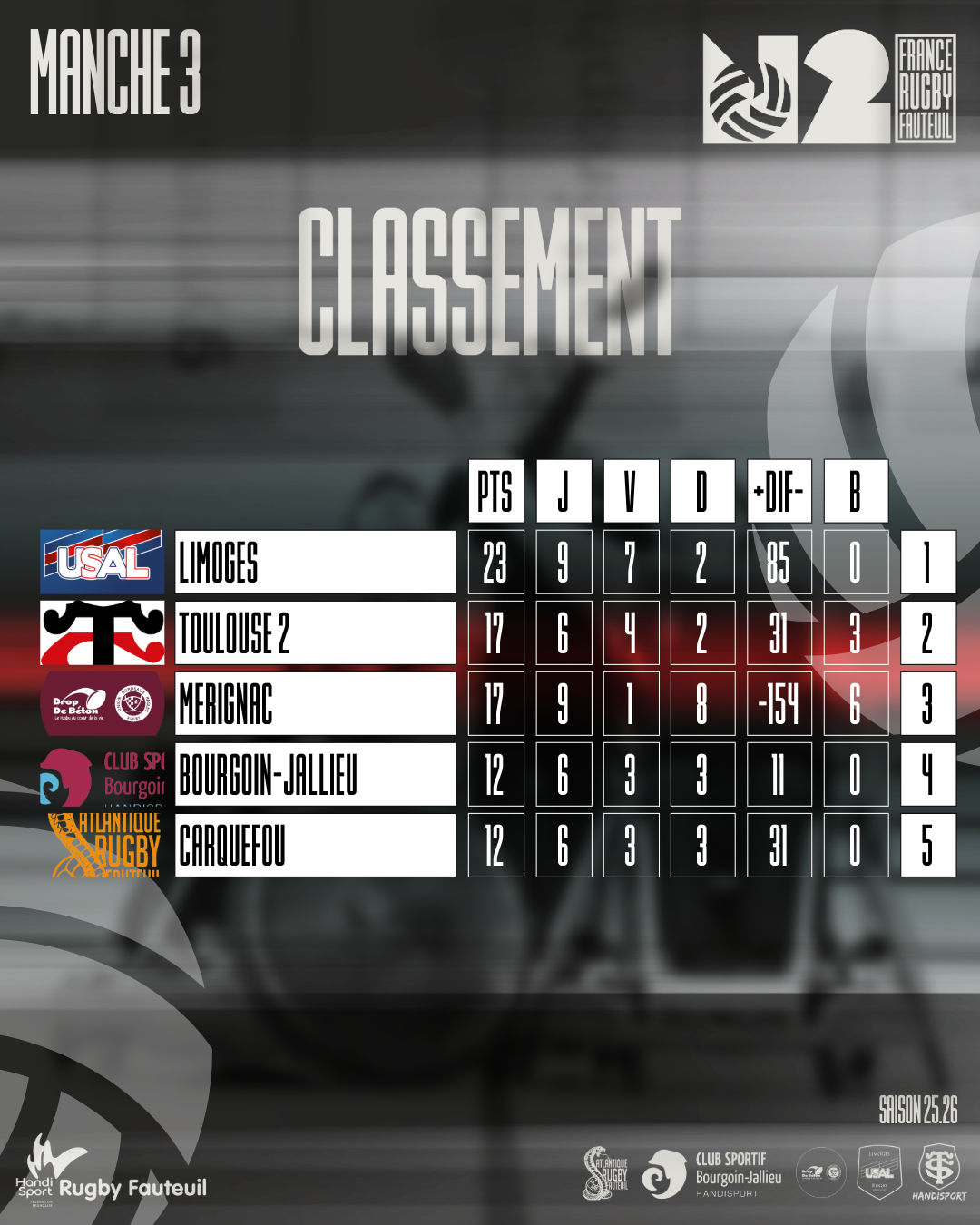 La Nationale 2 joue un rôle stratégique dans le développement du rugby fauteuil 🏐. Elle permet l’intégration de nouveaux joueurs, la montée en responsabilité des effectifs et la consolidation des projets sportifs. Une division où la progression collective compte autant que le résultat.
